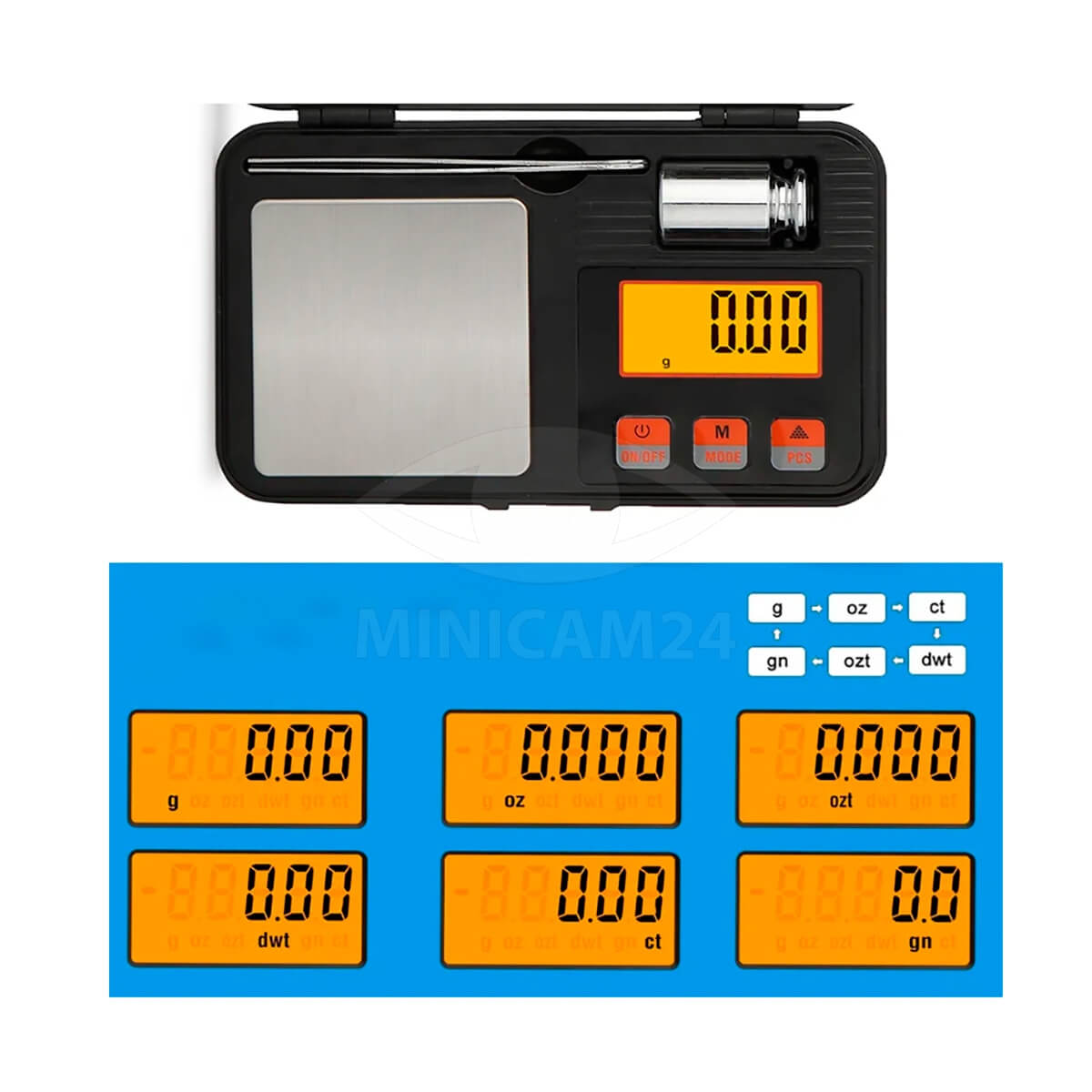 ЖК-дисплей с оранжевой подсветкой для удобного чтения различных единицах измерения: г / унц. / Гц. / Гт.