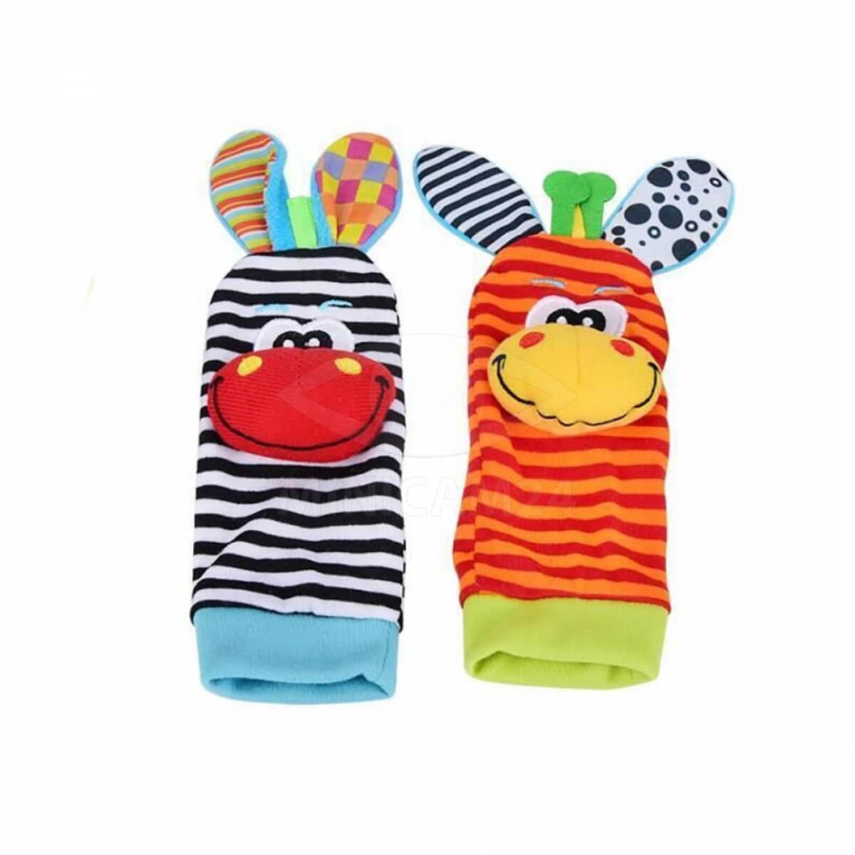 Детские погремушки Mopet носки, браслеты с животными в виде зебры и жирафа подойдут для малышей с первых дней жизни. Выполнены из мягкого плюша, он не провоцирует раздражение на нежной детской коже и не вызывает аллергию. Погремушки стилизованы под милых зверушек: по центру есть аппликация в виде забавной мордочки, сверху расположились ушки. За игрушкой легко ухаживать: достаточно стирать ее по мере загрязнения. При желании погремушку можно носить как браслет – для этого на нижней части предусмотрено специальное крепление.